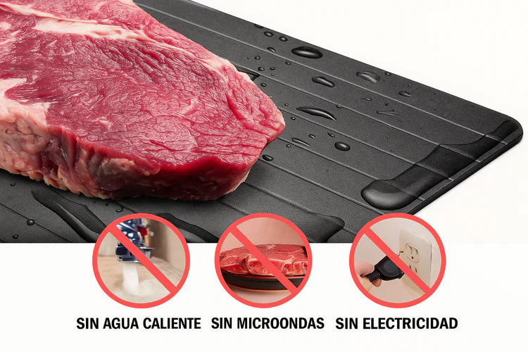 - Los métodos tradicionales de descongelación, como el agua caliente o el microondas, pueden empapar la carne, alterar su textura e incluso hacer que pierda sabor y nutrientes esenciales. Además, el calentamiento desigual suele provocar bordes semi cocidos y un centro aún congelado. Con esta bandeja no necesitas electricidad, agua ni dispositivos: simplemente coloca el alimento y descongélalo de forma natural y saludable. Así conservas el sabor, la textura y la calidad del alimento — como debe ser.